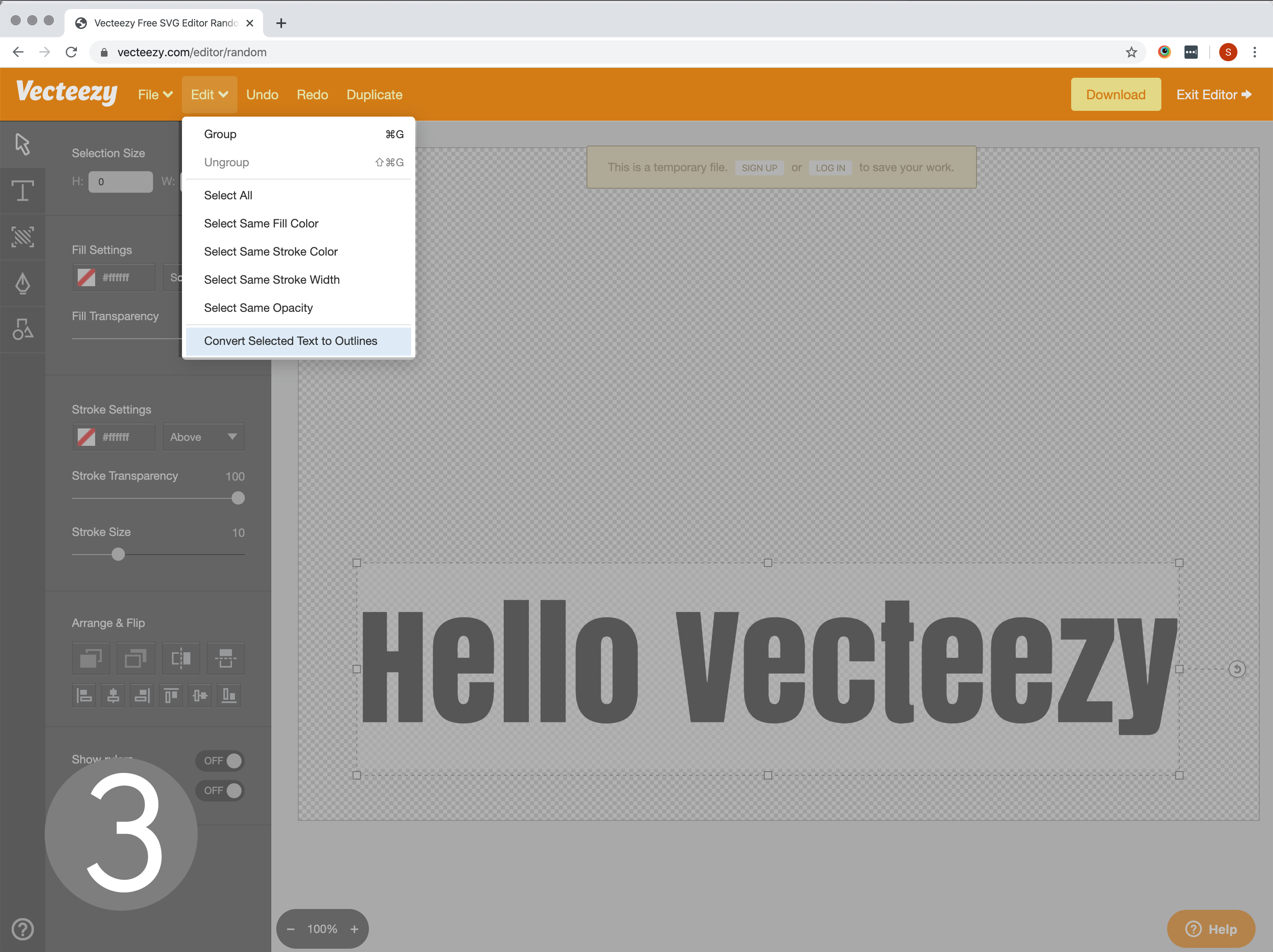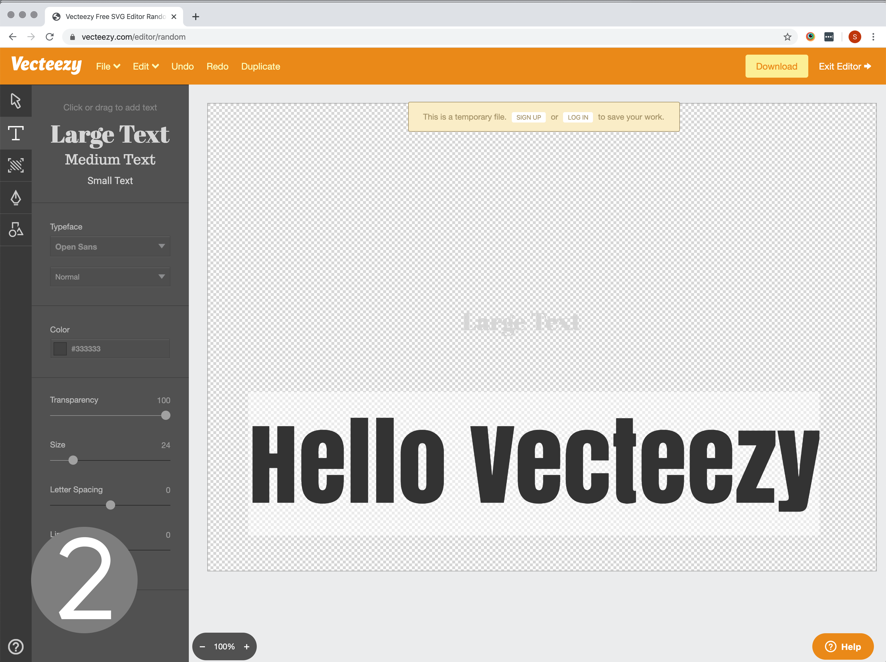 Requres Google Chrome Browser - Vecteezy is FREE! (be sure to read their license to make sure it works for your situation) Steps Go to https://www.vecteezy.com/editor and click the "start designing" button (Photo #1) It will load with a random design (click file -> clear to reset everything) Click the big "T" button on the left menu bar Click the "Large Text" (or click and drag it into the work area) and it will create a text object in the middle of the work area Type the word you want in Photo #2 above, I used "Hello Vecteezy" Select the font you want to use You can click the corners of the box to make bigger or smaller (Or you can scale it up on tool later) KEY STEPS COMING UP!!!!!!!! Now click the "Arrow" in the leff menu bar Select the text with the mouse Click the "Edit" button in the top menu bar, and click the "Convert Selected Text to Outlines" button, Photo #3 (Failiure to do this will make the file unable to be imported on Origin) Now click the big "Download" button in the top right and download the file to your computer (Photo #4) Upload this file to ShaperHub or a USB stick and Enjoy! (Note: if you get a file that is unable to be imported, it is likely due to the fact that you have not converted the Text objects to outlines.) Problems? Need Help? Ask questions here