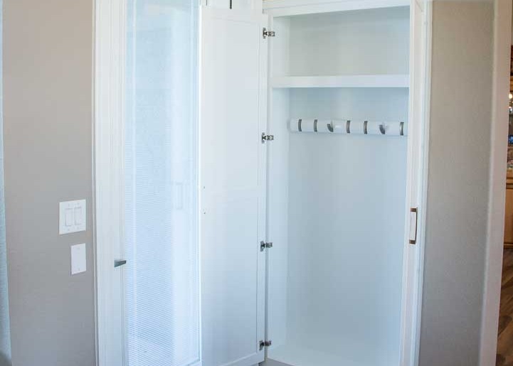 I built a cabinet for a "mini mud room" by our patio door. The doors were very long and required 4 hinges per door. I used the Blum 39C soft close hinge for the project. Instead of using a forstner bit to cut the pocket for the hinge I used the Shaper.