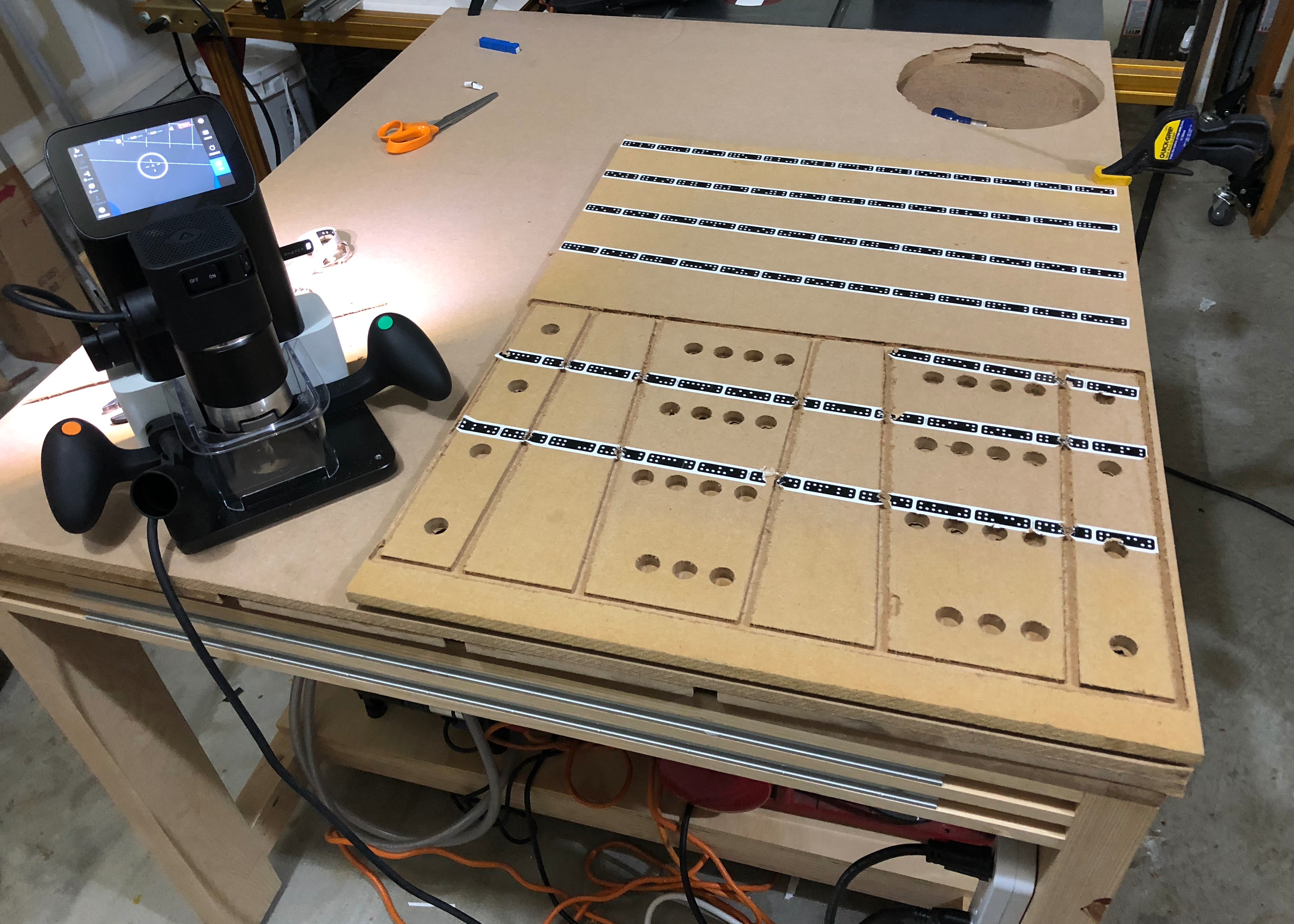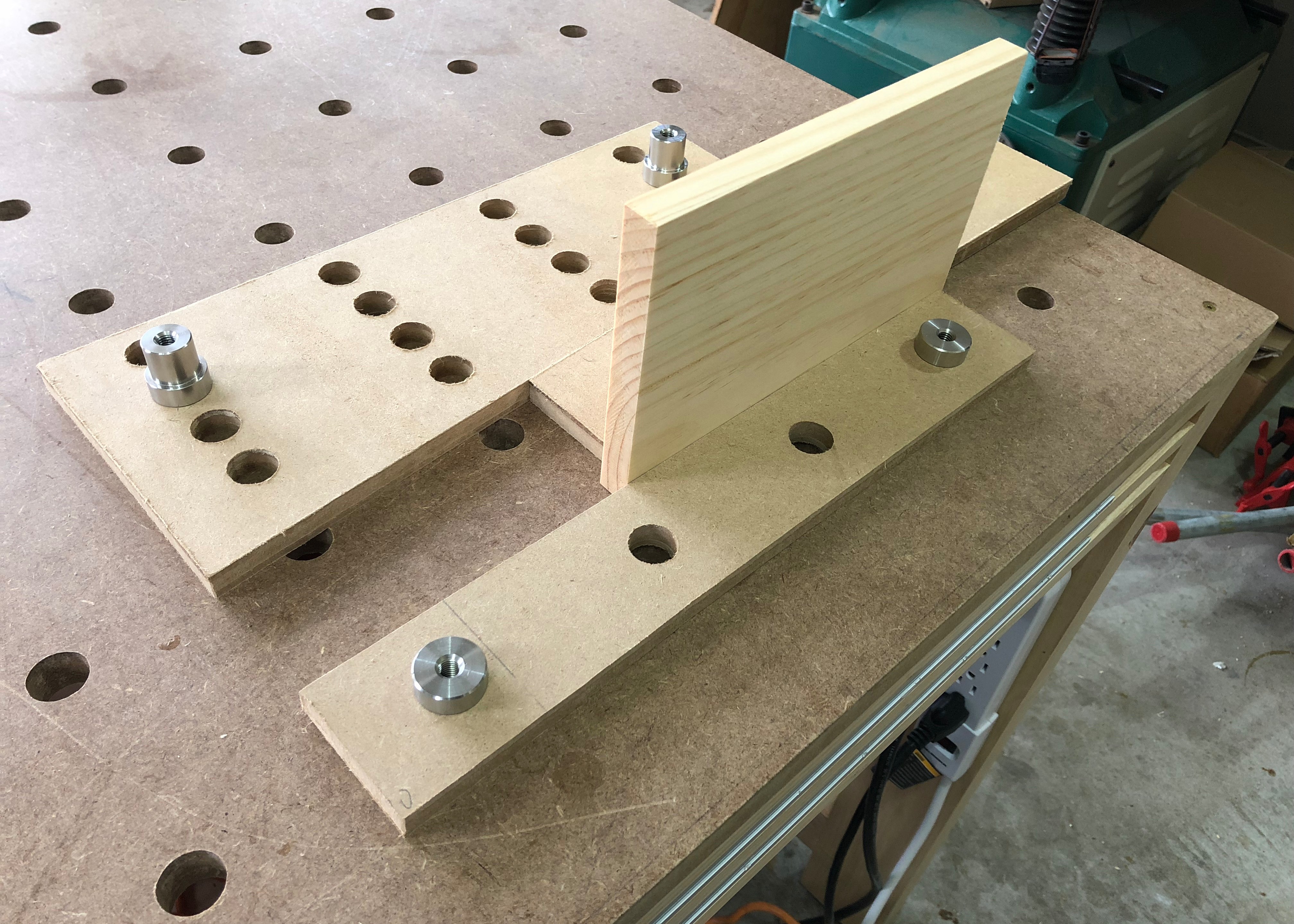 One of Woodpeckers “One Time Tools” that I had considered buying was their 2096 workholding kit; now, I can make my own! I used what I had on hand (1/2 MDF) for a test run. It works as expected, but I’m skeptical as to the longevity of MDF in this application. I’ve ordered a phenolic plate (as that is what the Woodpeckers version is crafted from) from which to make another set. The file fits a standard MFT top (20mm holes – 96mm on center)