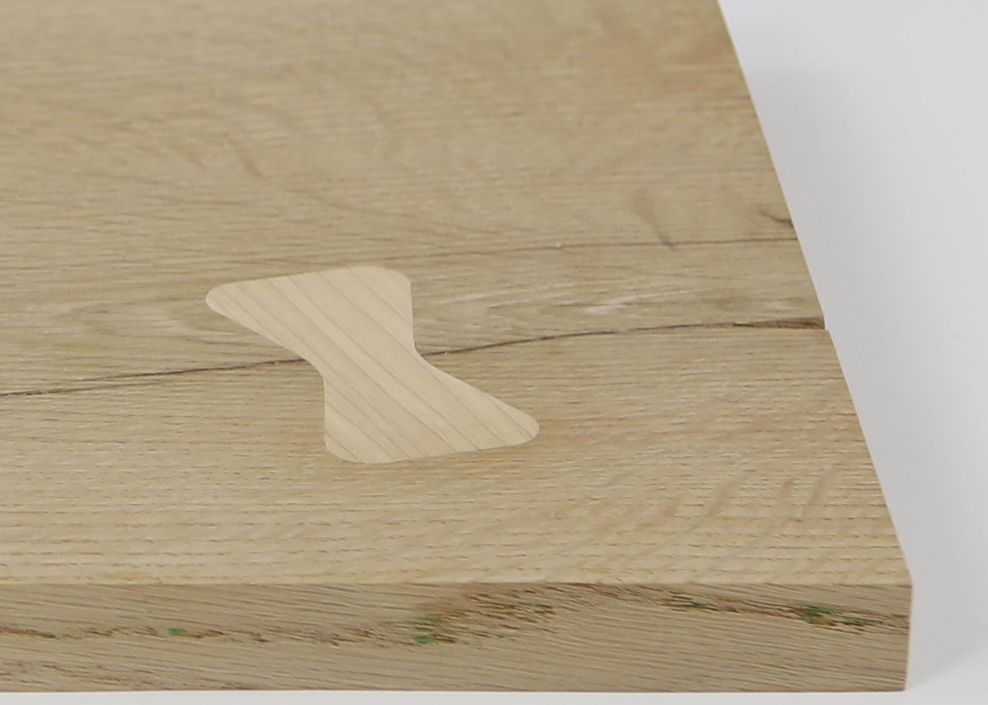 Butterfly inlays are mainly used to stabilize a split in the end of a solid wood board, but can also be used to cover up knot holes and other imperfections.