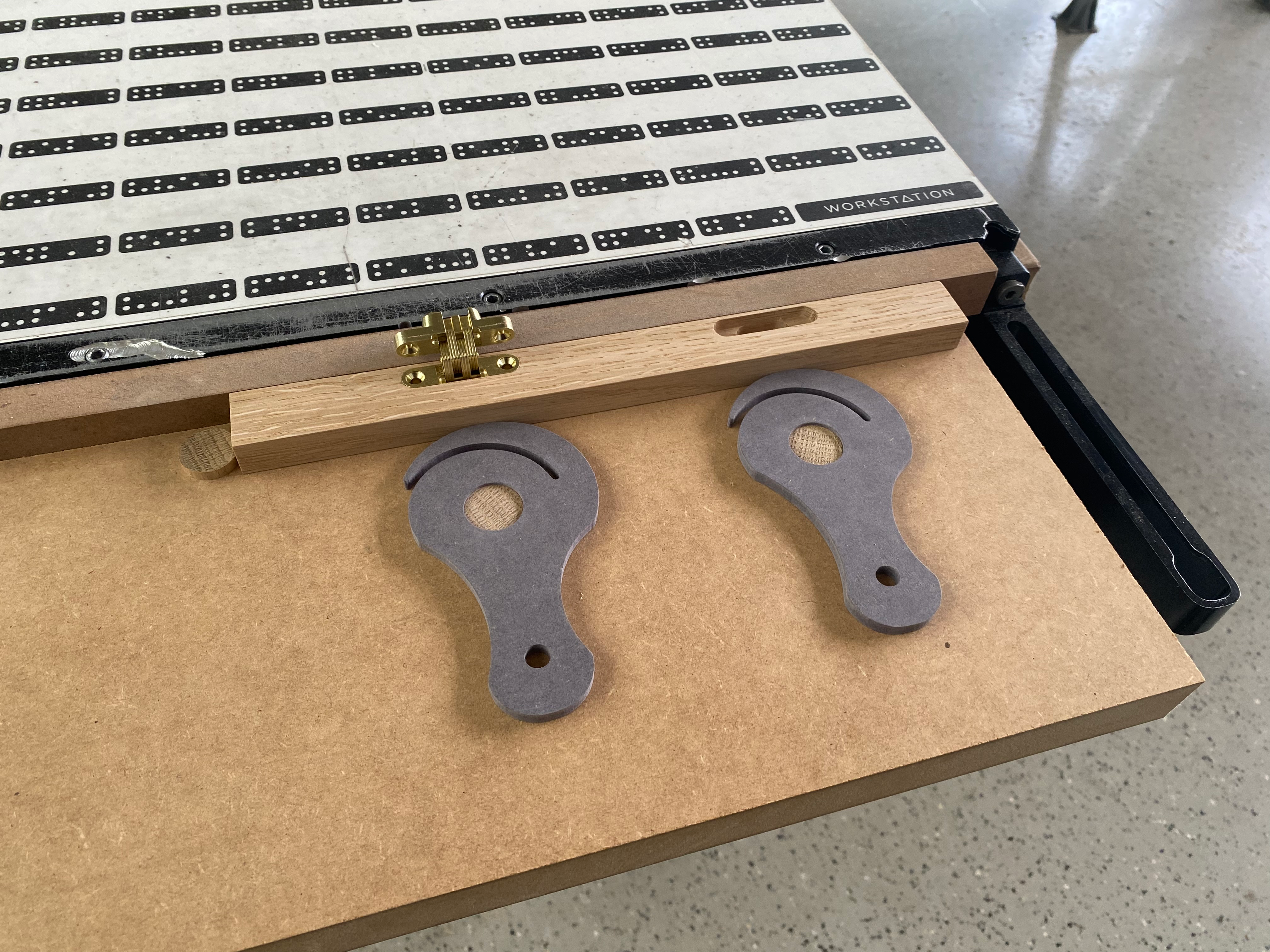 Flat clamps to fix flat and small workpieces. The spring function is meant to absorb vibrations occuring during the cut.