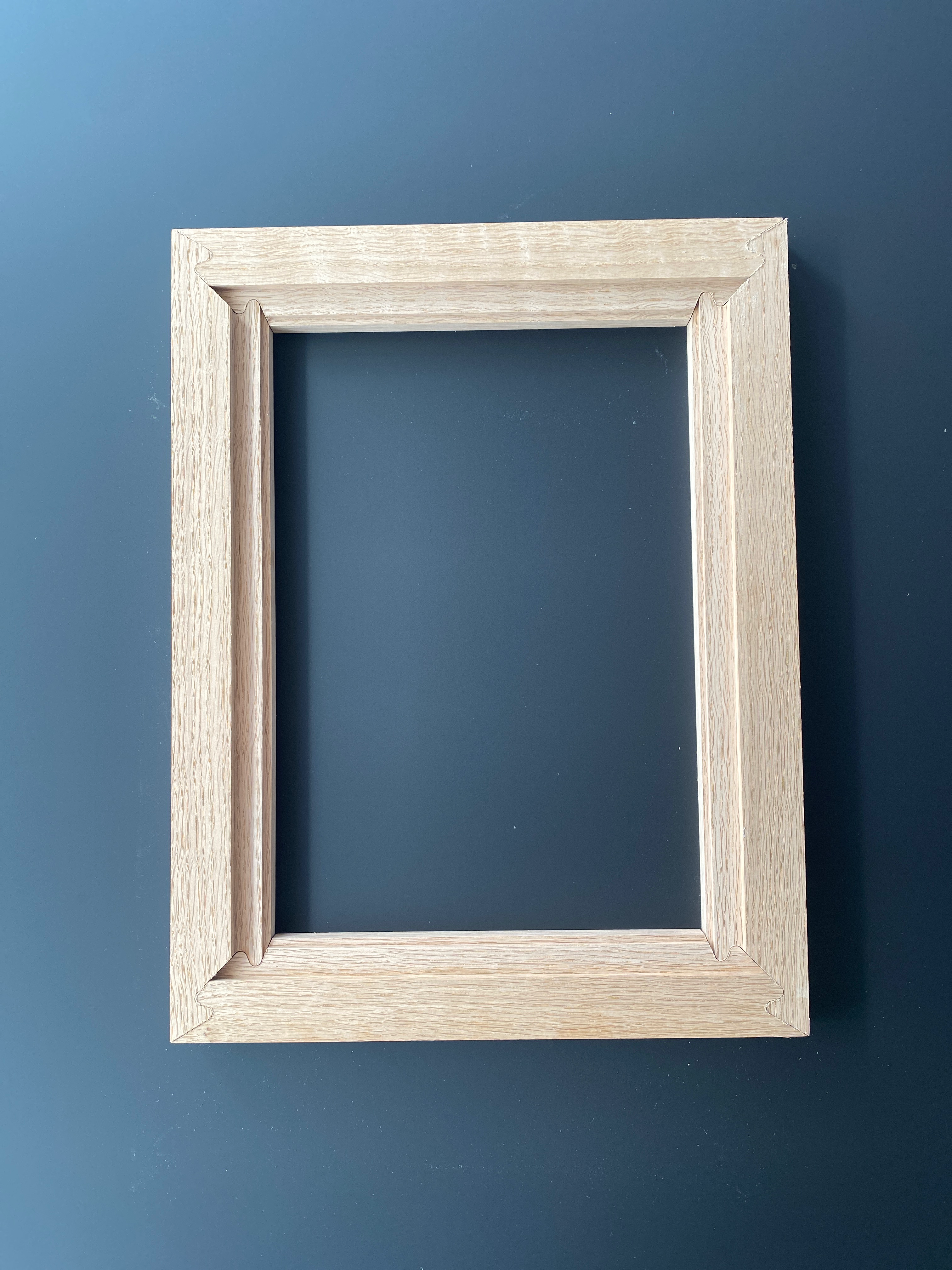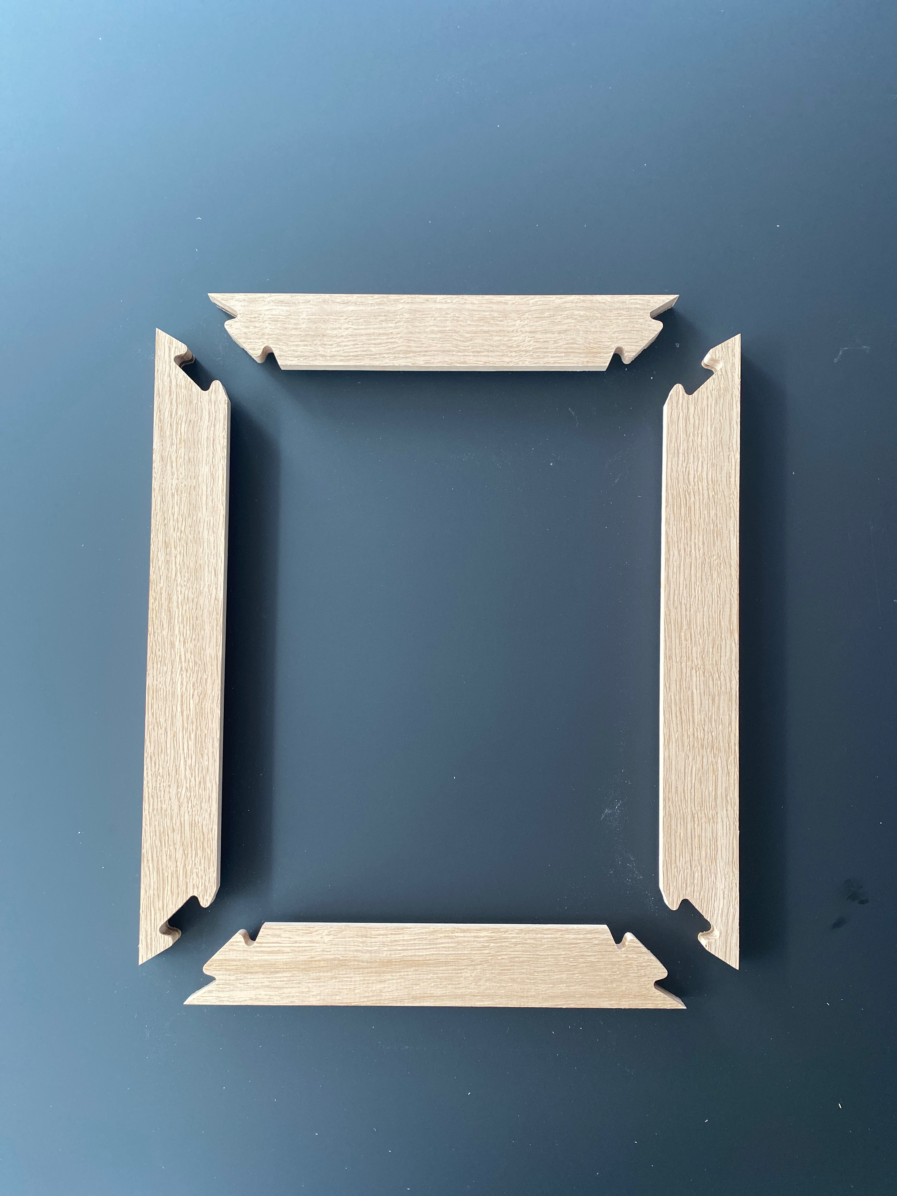 A simple frame with dovetail joints. The size fits an A4 paper, by obscuring a 5mm border all around. The thickness is variable and also depends on the thickness of the (plexi)glass and the backwall. BenchPilot-ready
