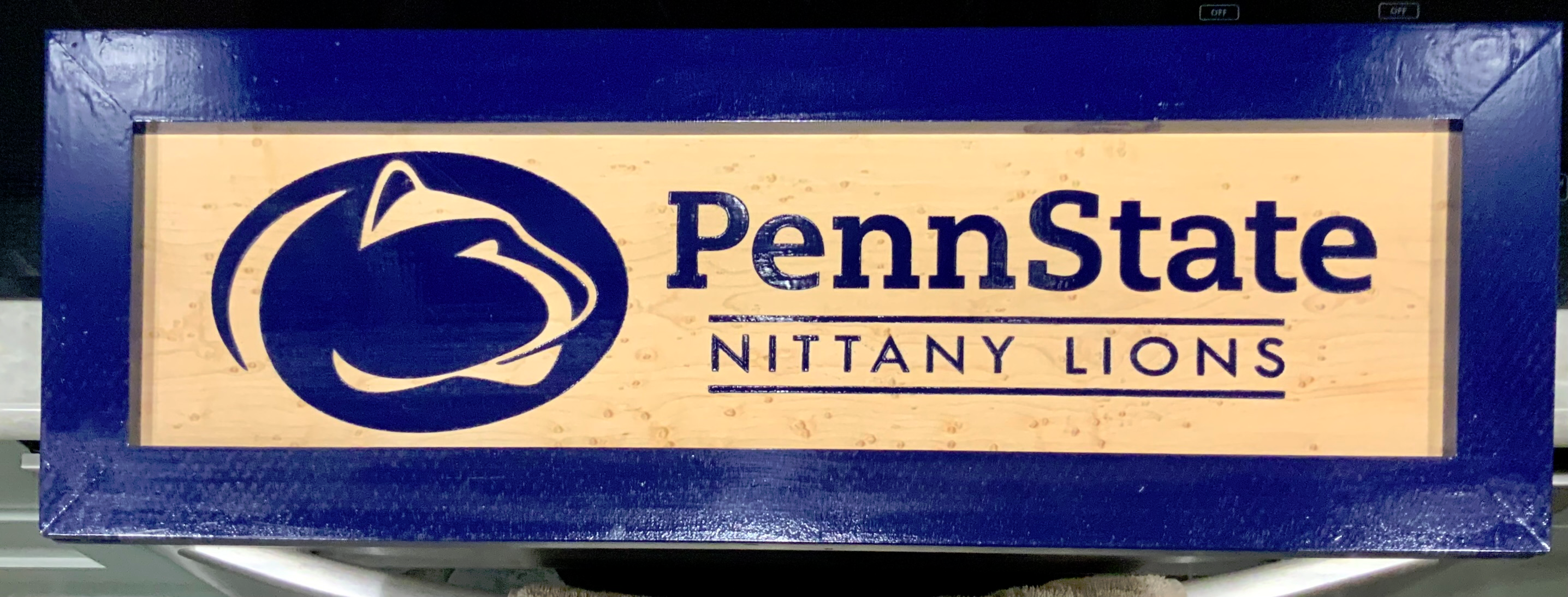 Patterns you can use to create Penn State themed signs, etc. One image is of the finished sign, the other is the sign before painting with the Oramask cut out using the file below.