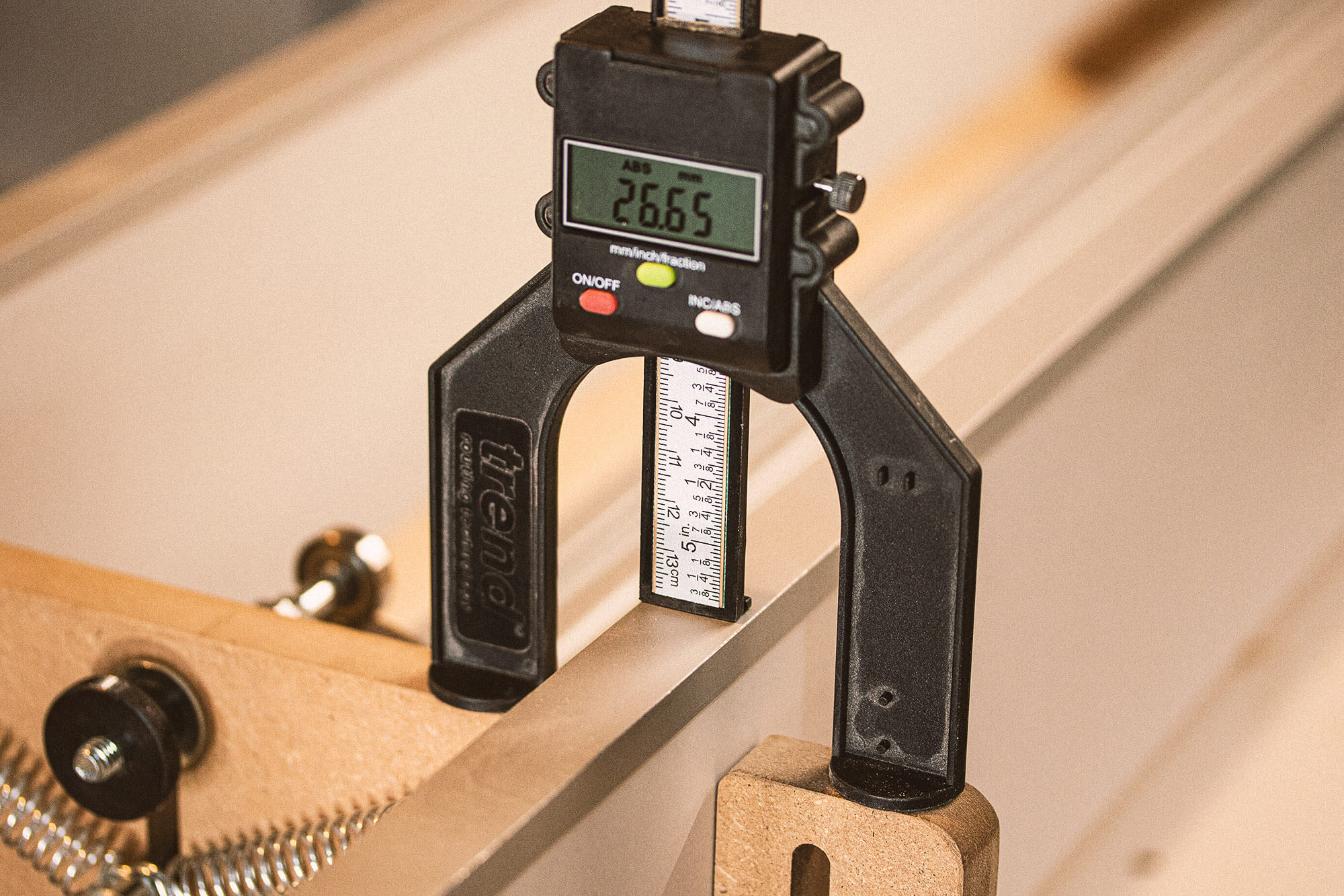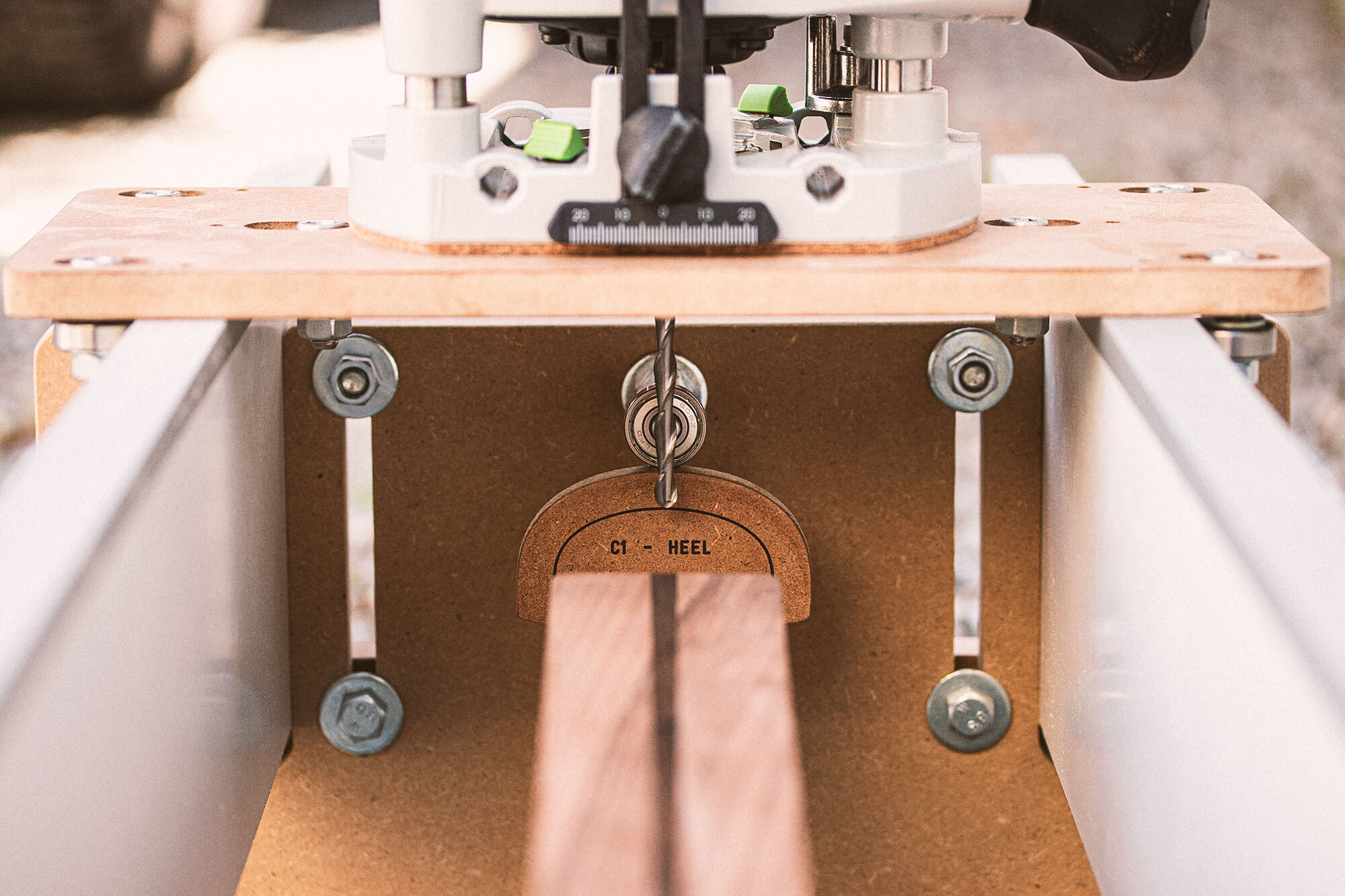 The main idea is built around a 40 x 40 mm Aluminium Construction Profile as center beam holding the guitar neck. The one on the pictures has a length of 900 mm. If you need different scale lengths, you only have to make the center part and the sides which are used as rails for the cartridge. The profiles which are guiding the rotation of the center beam just slide into the Construction Profile and can be easily exchanged. The recess in the center of the profile which follows the aluminium profile keeps it safely in place and does not allow movement. Make some test-fittings while cutting the recess of the profiles to find the perfect fit. the outer contour has an offset of 10mm to the reference curve. This is why I engraved the original sized profile additionally. I use this as a reference line to set the depth of the router bit precisely. The center point of the rotation is exactly the middle of the top surface of the aluminium profile and the profiles are designed for a neck thickness of 25 mm. I made the side rails height-adjustable by adding depth stop brackets. I'm not 100% sure if all of you will need this but I wanted to have a version which is very flexible. But this also means that the initial setup might take longer. What I find super helpfull for this process is a digital depth gauge I normally use together with my router table. The goal is to have a unique hight on all 4 points where the side rail have contact to the base construction (I don't find a better name for it right now but I hope you all know which part I am refering to ;). And let the differenty sized profiles take care of holding the propper distance to the router bit. It helps to make the base construction in form of a "L" shape because it is usefull to clamp these to a solid table. Because of the spring tension, the jig aloone will not stand very stable. I did not include shaper files for the rails because they are simple recangular shapes. I added an "U" shaped aluminium profile on top of them. Together with the bearings on the cartridge it slides super smooth. I also added some Silbergleit on the aluminium which further reduces friction. Initially I used a Kress router motor this is why the carriage has a center hole with a 43mm (Eurohals) diameter. I later decided to replace it with my OF1400 plunge router. It only needs 2 holes to screw it in place. They are unfortunatelly not part of the shaper file. The plunge router and especially this one makes it very easy to micro adjust the depth of the router bit. But make sure, you have a really long bit with a length of about 100 mm. The Aluminium Profiles can be found from different suppliers. These are from the company Item. https://product.item24.de/produkte/produktkatalog/produktdetails/products/konstruktionsprofile-8-1001042794/profil-8-40x40-leicht-natur-2633/ On my website, you can find an article explaining more details about the design and the build process: https://on-guitars.com/blog/building-a-neck-contour-jig Feel free to join the thread in the community section about this project: https://community.shapertools.com/t/guitar-neck-contour-jig/5077
