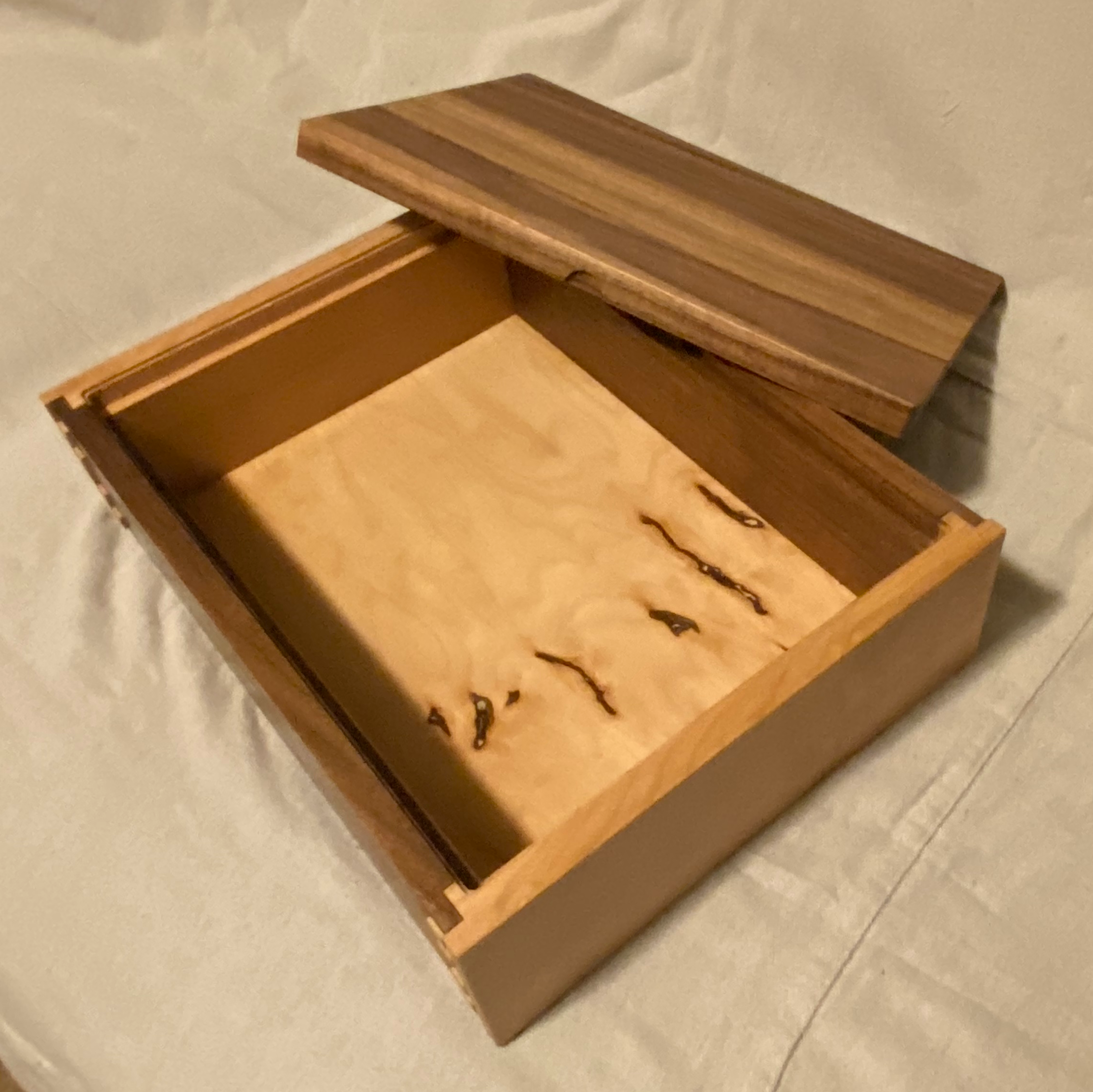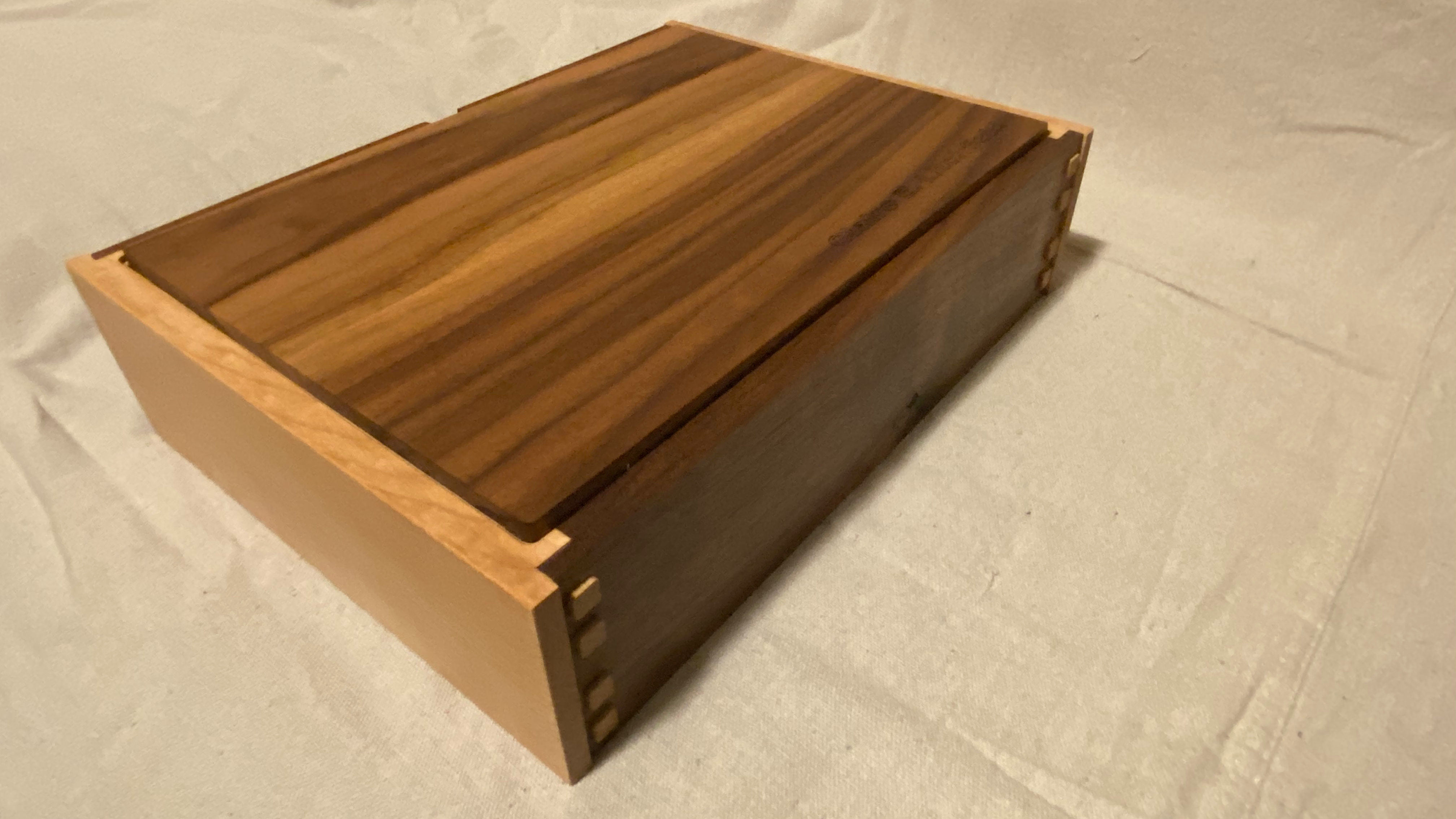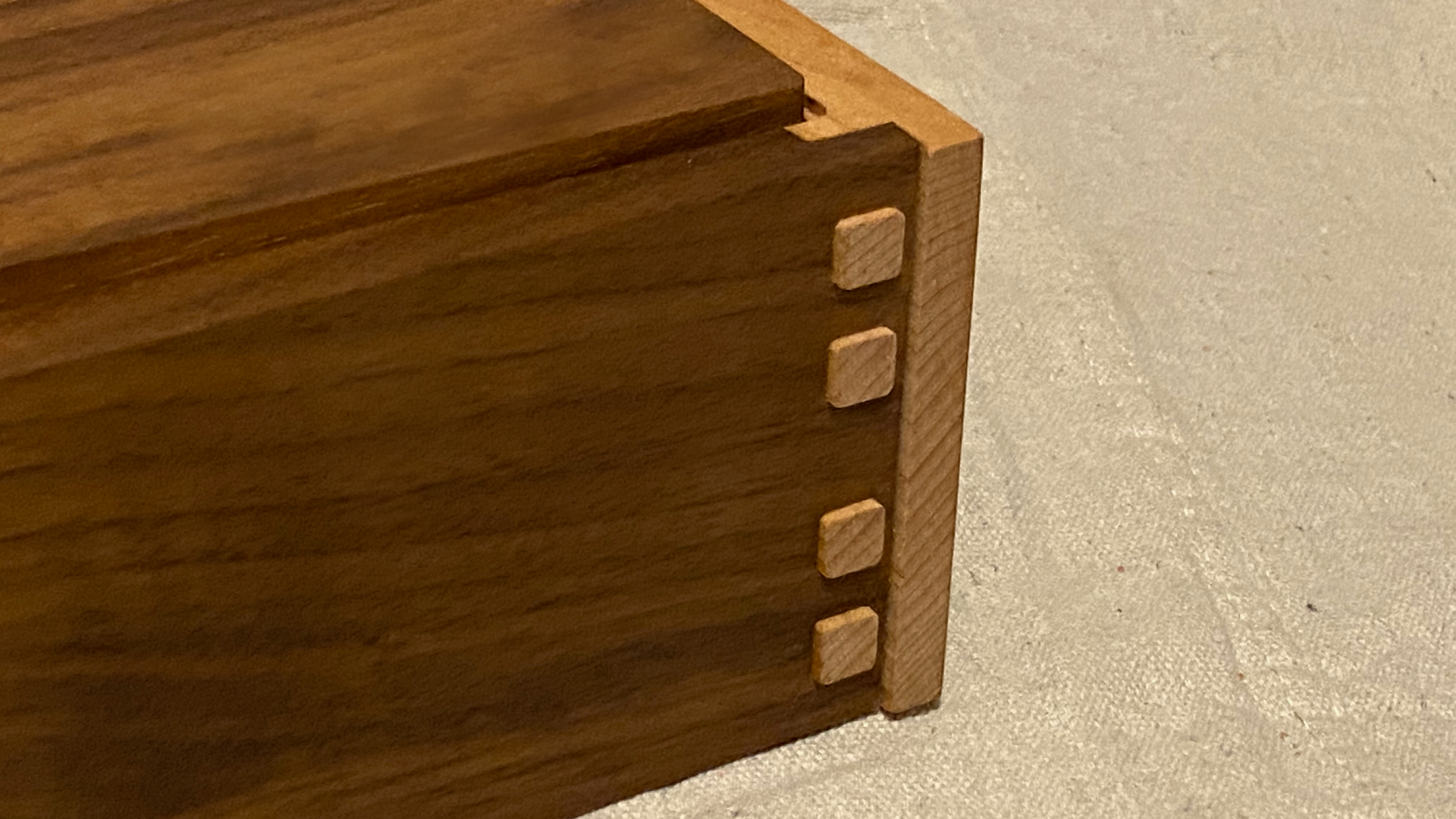 This box is based on a build by Neil Paskin at paskmakes.com. I left the tenons a little proud (1/8") to give it a little more contrast.