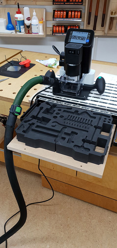 First I have produced a bigger support surface for the workstation, so that I could fix the foam insert on it with double sided tape. In that case you need additional Shaper tape on the foam insert.