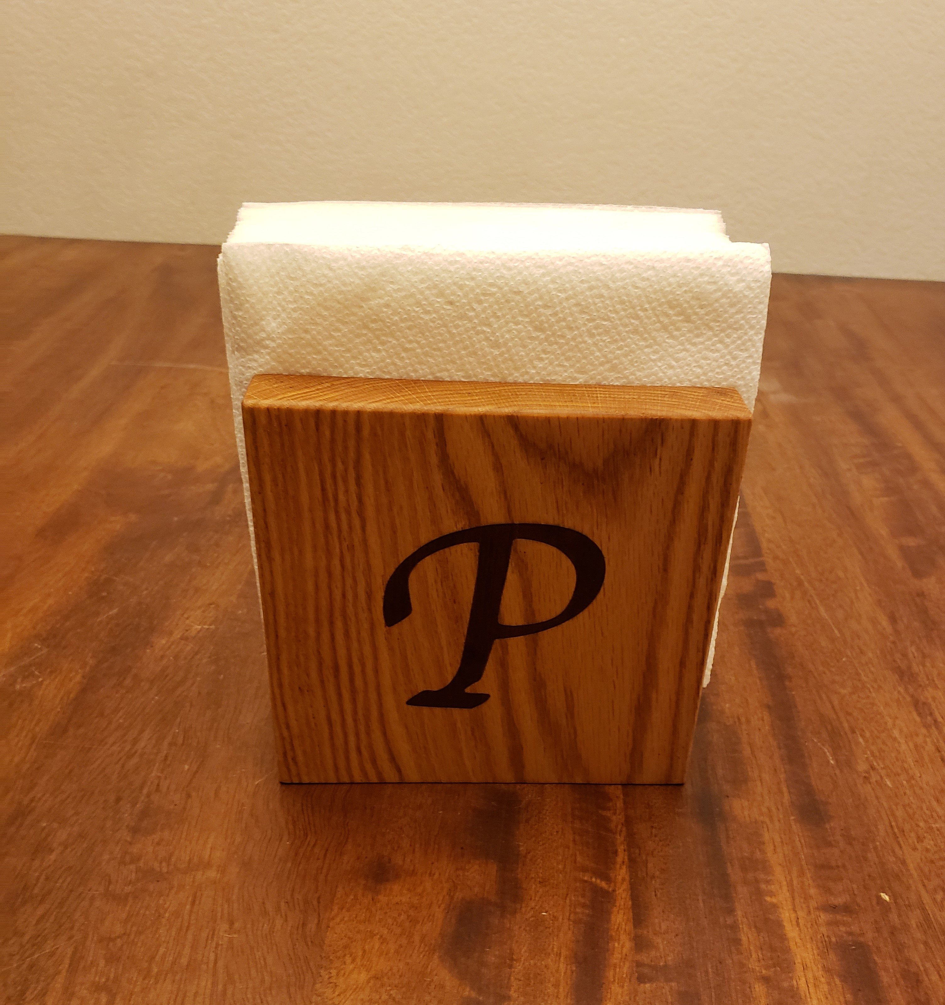 Pretty easy, straight-forward project. Yes, you could do this without a shaper origin, but its much easier and cleaner with one. Cut wood or plywood to the dimensions Drill dowel holes using shaper origin. Spice up the faces of the napkin holder with an inlay. I used the letter "P" on a couple because they were family gifts, but use your imagination. Also, more use for your Shaper Origin!! I like to sand, router edges before assembly Assemble - glue in dowels to holes on bottom piece, apply glue to sides of bottom piece and attach the sides, add clamps Optional - I like to cut an additional 2.25" block for the top to clamp temporarily to hold shape, so it stays square. obviously do not glue that top block Wipe off or sand away any glue squeeze out. Finish using whatever you like. A food safe finish might not be a bad idea