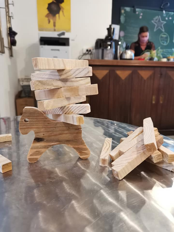 cheval x1 barrette bois x20 Récupérer et démonter la palette, la raboter à 18mm pour le cheval et 10mm pour les barrettes. Couper dans la longueur à 1cm d'écart pour les barrettes.