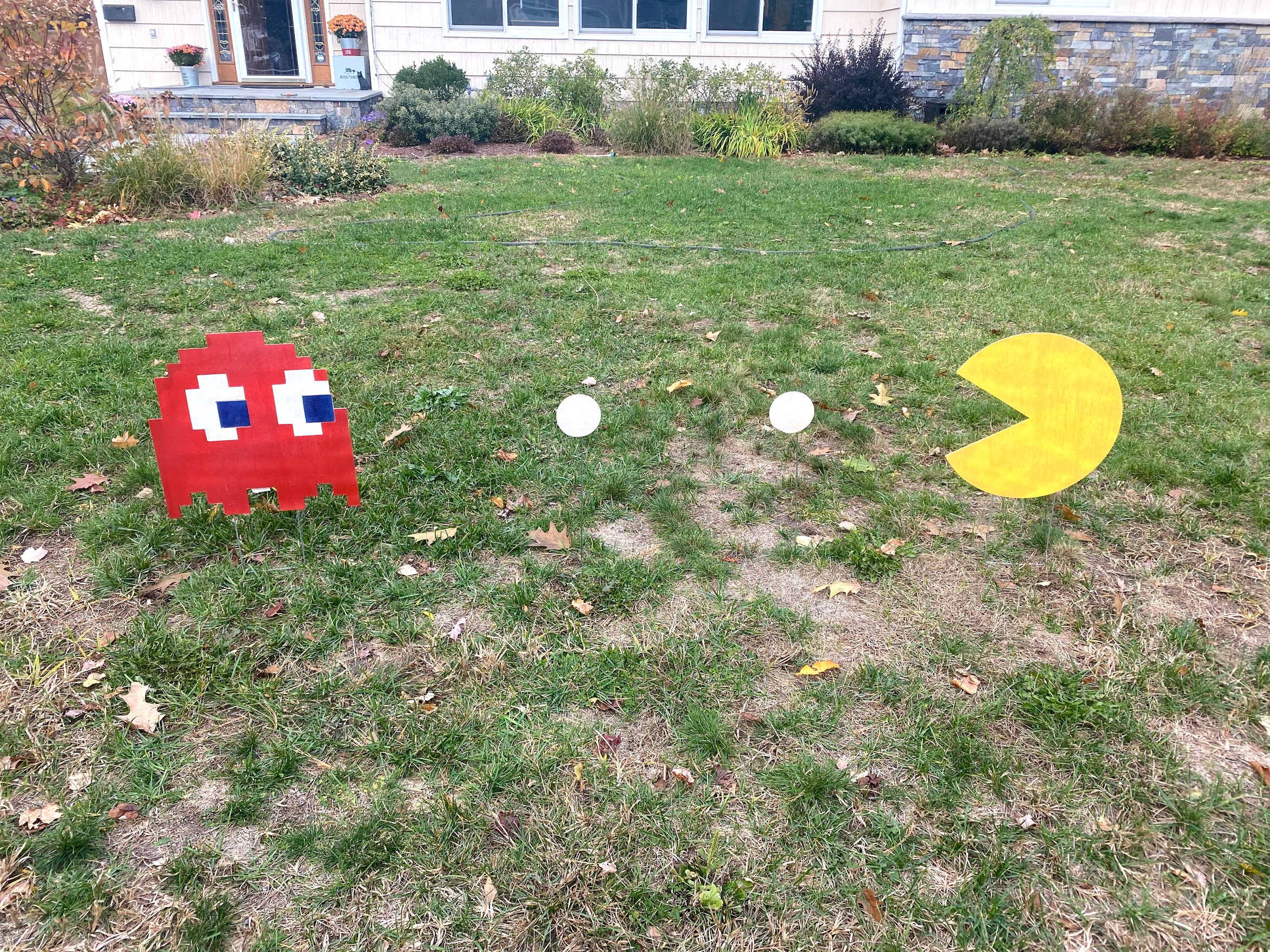 Pac-man yard decorations for a retro twist on Halloween. Project includes design for a vulnerable ghost which I haven't cut yet.