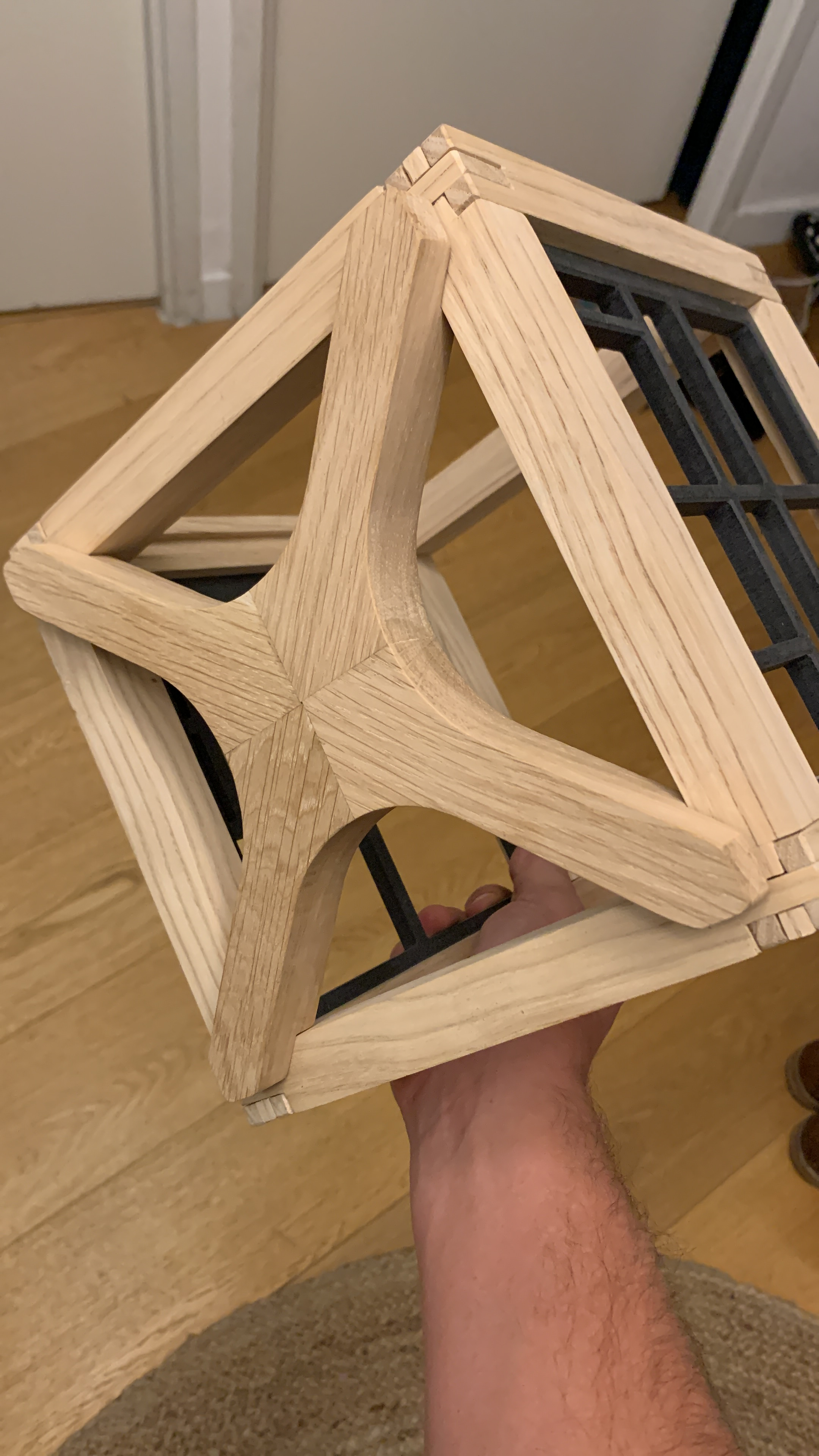 The main file is the "out-support_8_pieces.svg". It is used to cut the four pieces that constitute one support (so obviously here there are 2 supports...). Adjust the depths to the thickness of your material. The two other file are the fixture to hold 4 pieces on your workstation vertical clamp "out-template_4_pices.svg", and cut two tenons and two mortises, using the cutting file "out-decoupe_4_pieces.svg". Then switch the pieces and cut the tenons and mortises in the other parts!