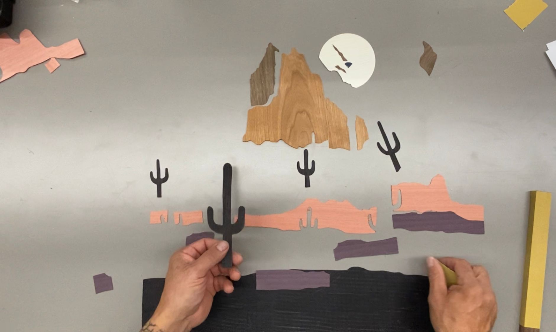 Before starting, check out the video above, (or here Shaper Origin Inlay Tutorial https://youtu.be/BS2D3sVmnnw ) where I'll show you how to work with this fragile material, employing a fantastic solution for temporarily holding the veneers in place, whilst they're being cut with the Shaper Origin. You'll see how easy it is to remove the puzzle pieces once cut, assemble the entire project and adhere this assembly to your choice of substrate. Veneer packs available here: https://ramonvaldezfinefurniture.com/product/shaper-origin-veneer-packs-with-free-svg-files-tutorial/ First make a fixture using MDF, spare veneer, and Shaper Tape. Use Easy-Tack 7020 to adhere veneer to your fixture, and once the veneer blank is lightly adhered to your work area, simply begin by cutting all of the pieces (files), sky, Shiprock, cacti, landscape, moon, etc. Use low adhesion tape from the front side to assemble all these pieces like a puzzle. Squeegee glue into seams from back side…keep flat & allow to dry, then remove tape from the front. Adhere (clamps & cauls or veneer bag) this assembly to your choice of substrate. Another veneer or balance sheet should be applied to the back side...this creates a stable panel. Sand flush & smooth...finish with your choice of clear protectant. Enjoy!