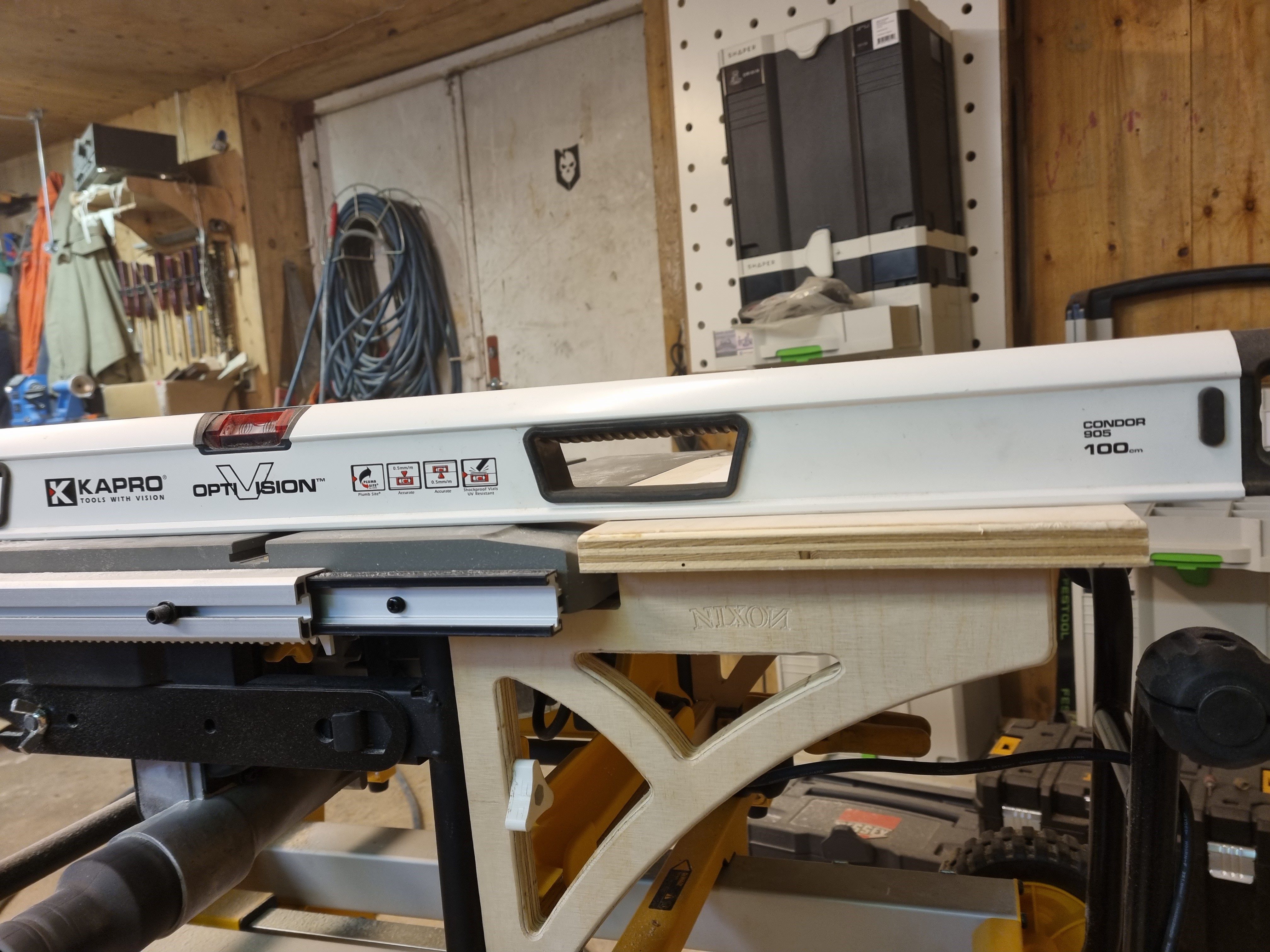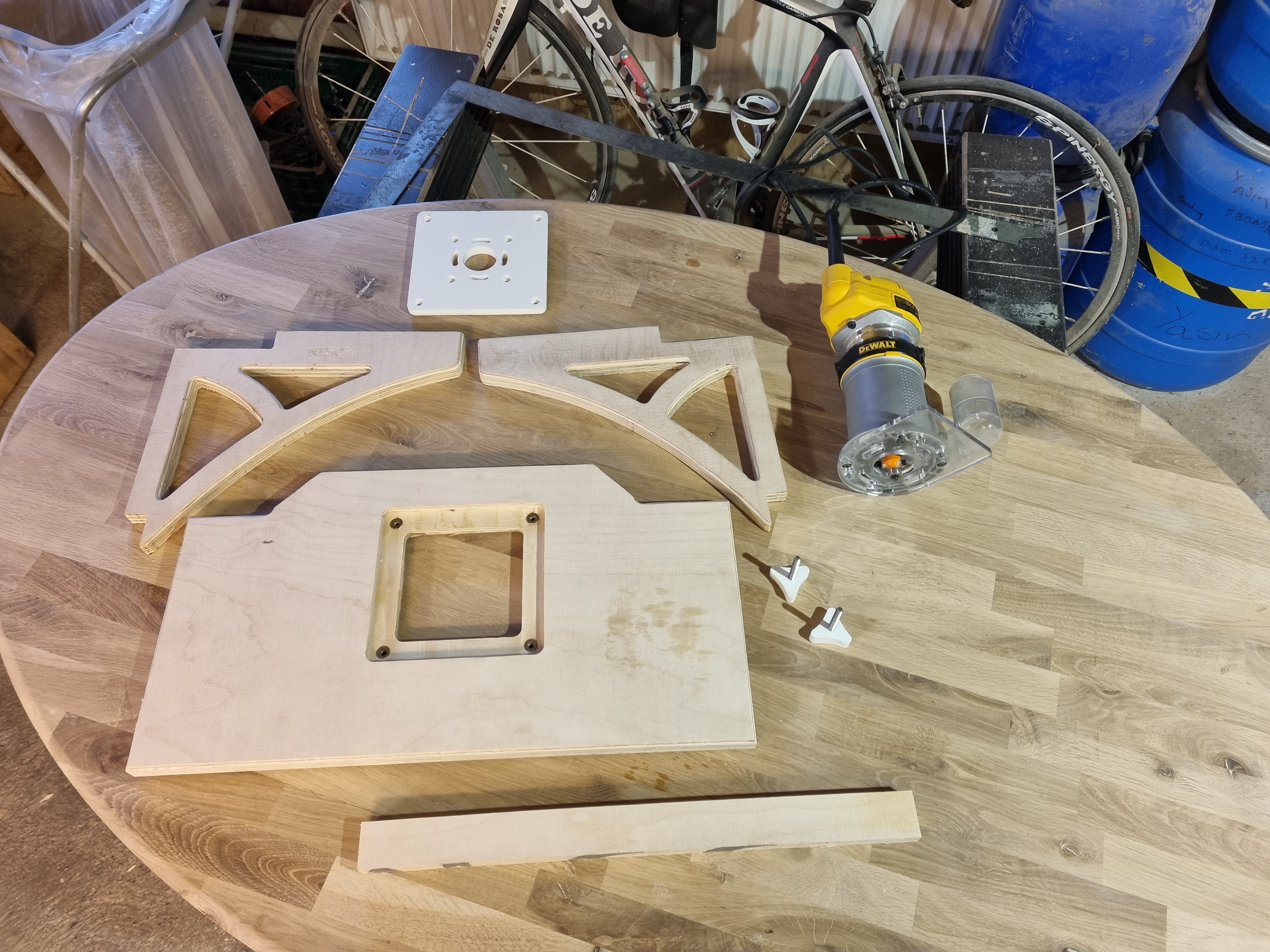 The side table is flush with the tablesaw, so basicly you don't need to remove it, cuz it'll work just like an extention or a bigger worksurface for your tablesaw. But if you'lle need to trasnport it ot just like it to be put away it's an option :) the two brackets fits on the DWE7485 from 2020 however I've seen some videos where the saw it self looks a little different from the one I have, so I can't be 100% sure. You can use the fence of the saw as it is and make a hole in the aluminum for the router. However, my saw is brand new so I went with a different approach. 1) So first I made the two brackets and the braces in the bottom to make sure the did not tilt and to make it a less fragile piece when it was all together. Bracket plywood is: 290X270x18mm (this is a tight fit, so make it 20-30 mm bigger and your good in the lineup) Braces: 34X437X18mm 2) Then I made the two knobs for a 6mm hexnut. I glued in the nut with some resin. marked the holes on the brackets, to mark them on the metal frame of the saw. I used two 6mm threaded rivet nuts in the frame. you can also drill the whole way through and put a wingnut on the other side.. 3) I made the baseplate for the router. Depending on the thickness of the material, what screws you'll use etc the depth of the holes might be different depth than mine etc. Of cause the material thickness also determines how deep you’ll need to countersink it in to the top. 4) After mounting the brackets I made the top, but for the shape I just used the jigsaw. The I lay the baseplate for the router on it to figure out where to place it and shaped the hole for it. For making the baseplate secure I used 4 screw brushes w/collar for 6mm 5) Last step is to decide if want to make a fence or use the one on the saw, the brilliant thing is weather you choose A or B you’ll be able to micro adjust the fence using the built in system for messuring, alle you need to do is adjust the guide. I build my own fence as you can see and I used 4mm threaded rivet nuts to make is sit in place. Enjoy I know I will…