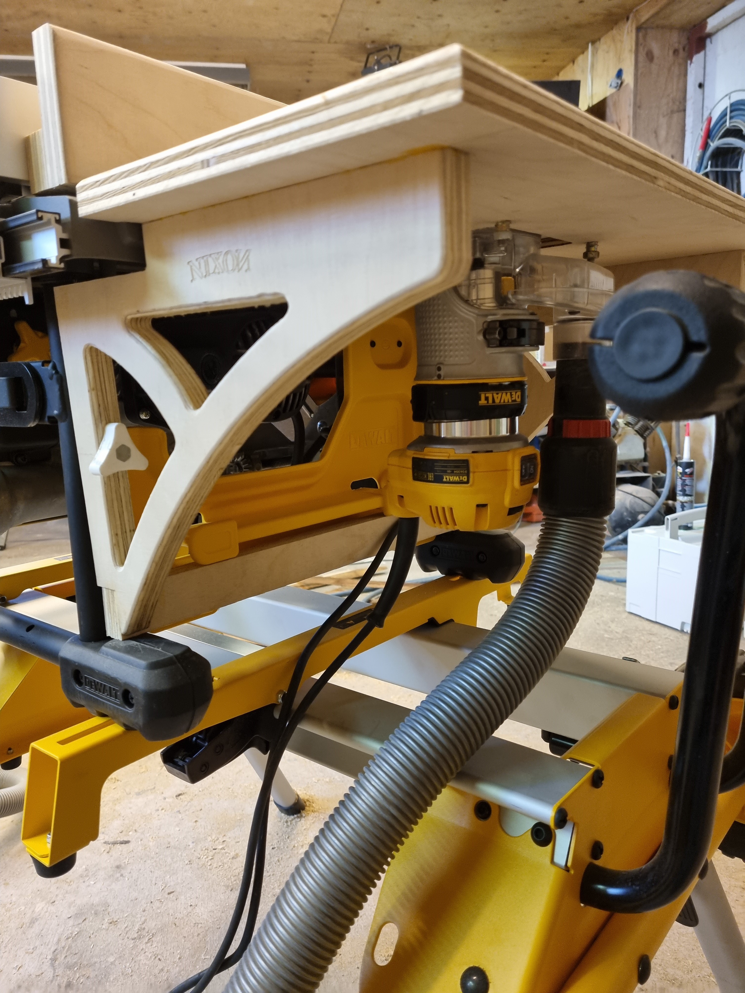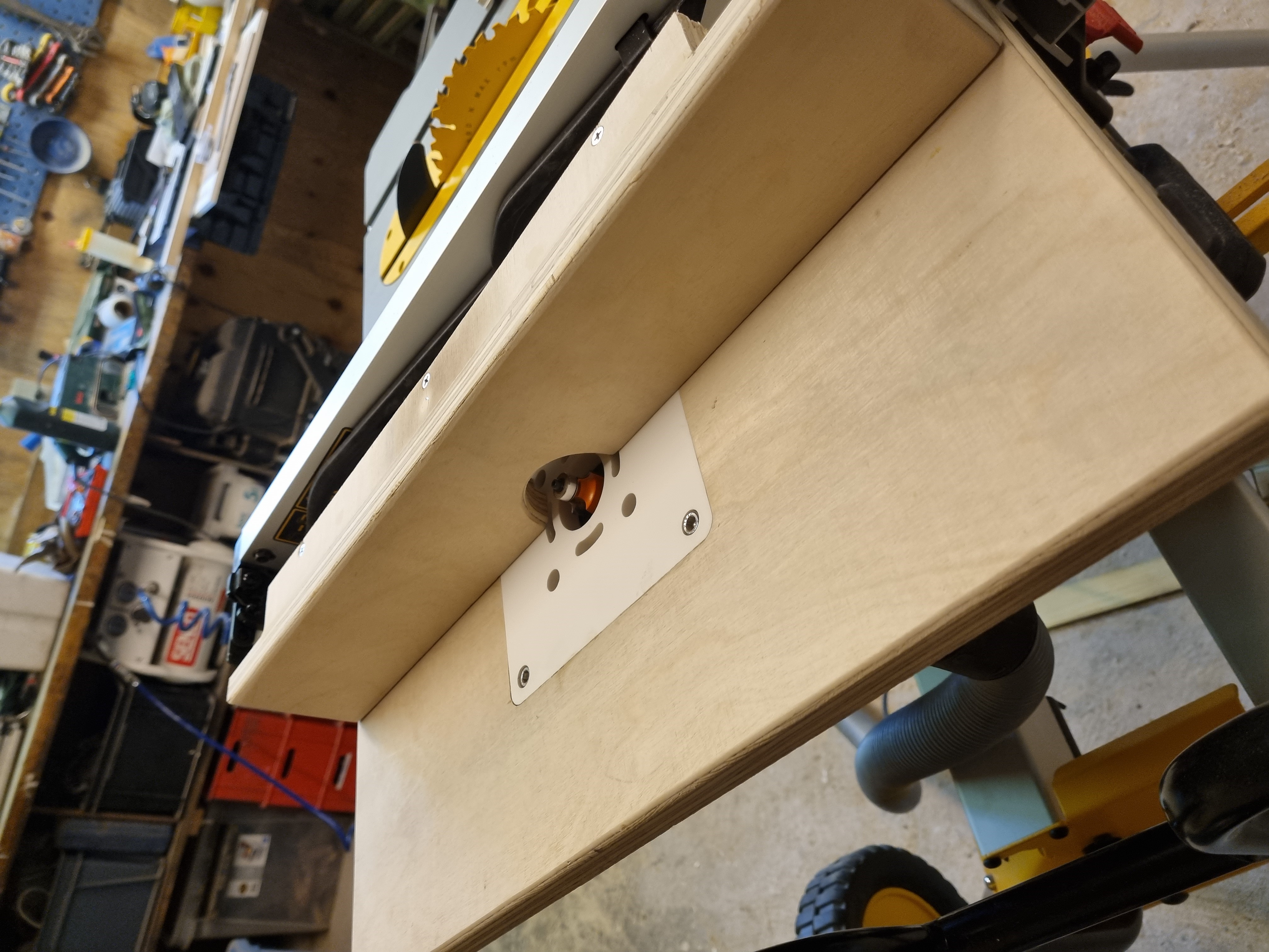 An extention of the DWE7485 tablesaw - with at table for the D26204k Router