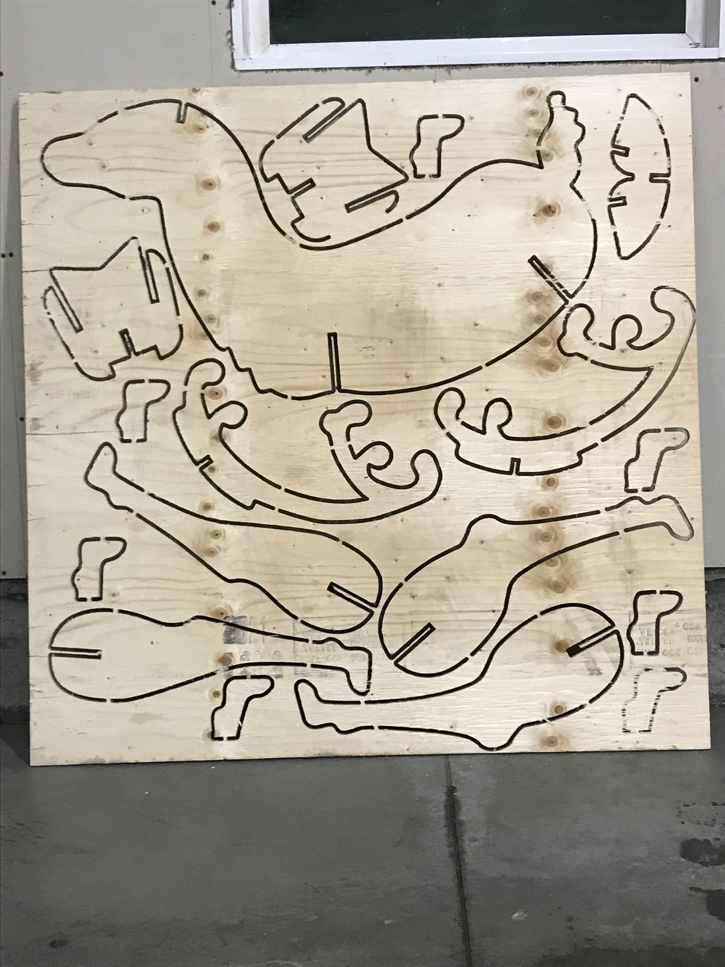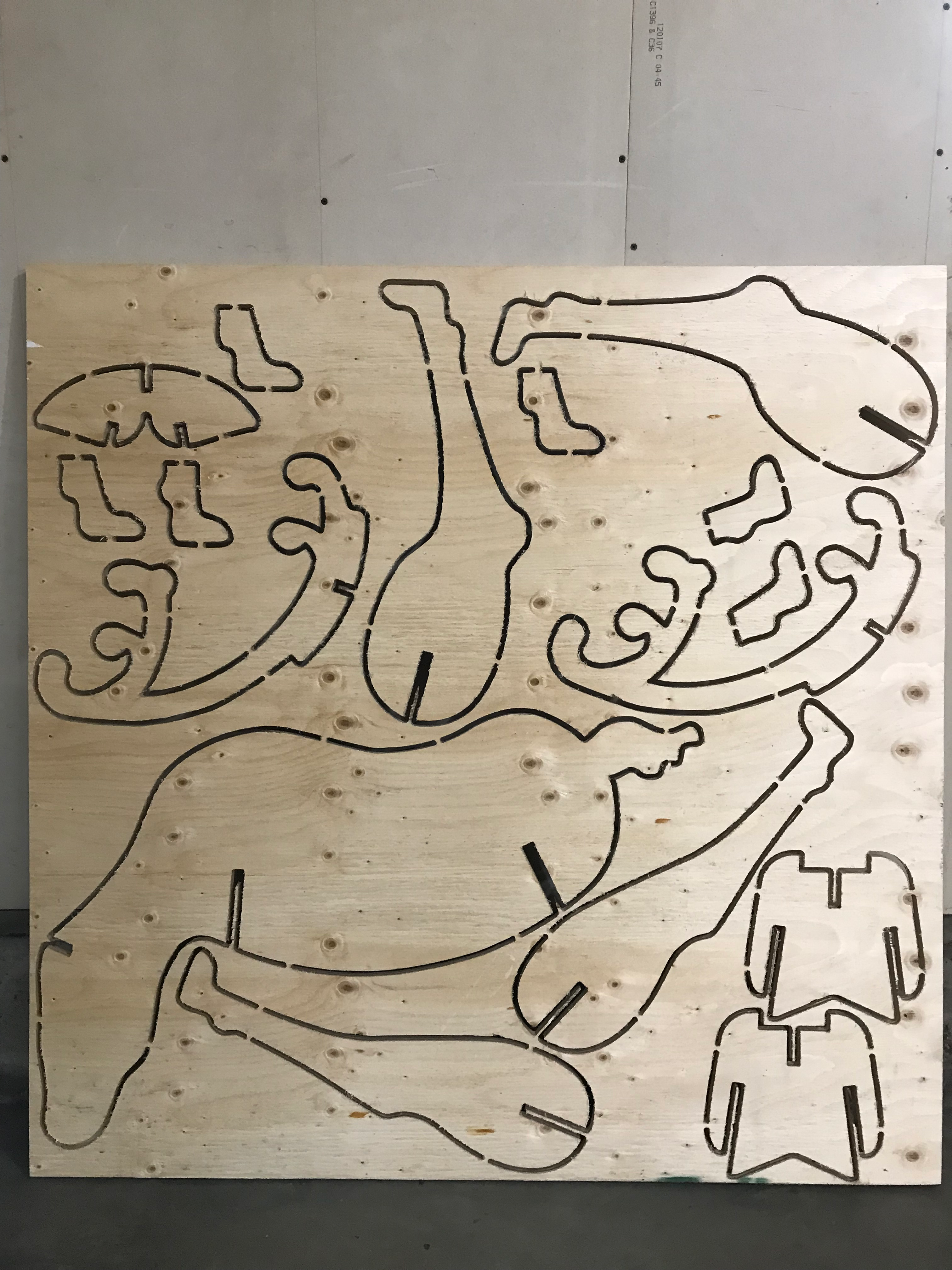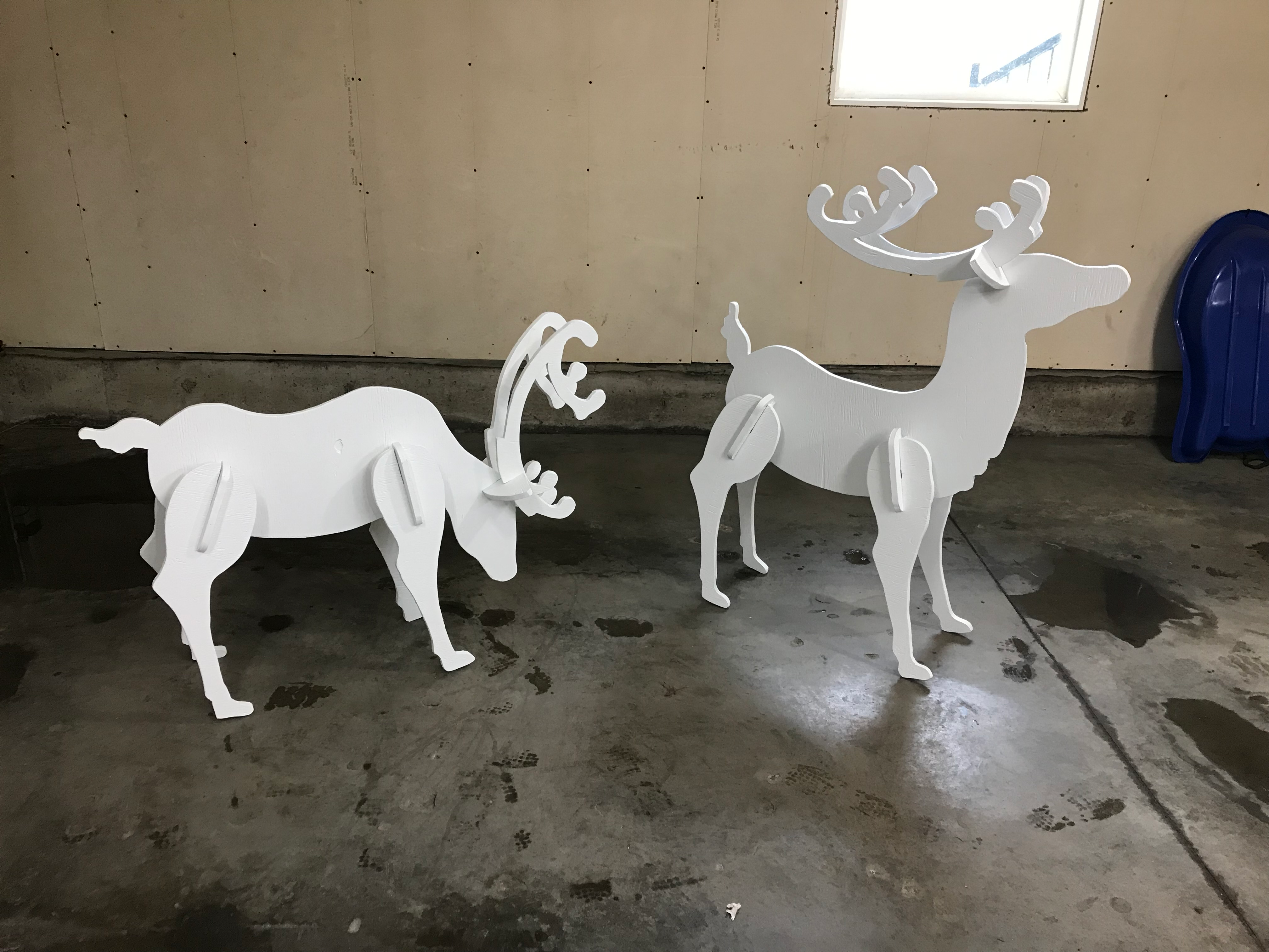 Not sure why but Shaper may want to do these cuts as online…make sure you switch them to pocket with an offset of -.05” or else you won’t get a toolpath. I’ve sized the joints to work with 5/8” plywood. The joints are a little looser than I had intended but should tighten up slightly once painted. I painted mine using a brush and a roller with some exterior acrylic white paint. I’ve sized each deer pattern to fit on a half sheet of plywood. Because there was space left in the patterns, I’ve added in the bottom 4” of each leg twice to allow you to glue onto each leg which will strengthen them up if you want to secure the deer to the ground. You’ll also need a jigsaw to finish cutting these out. All parts are bridged to the material you’re cutting out of so that they don’t need to be taped to a backer board in order for the cutting to be completed. Forgive me as the files aren’t perfect but this is the first real drawing I’ve put together. Enjoy!