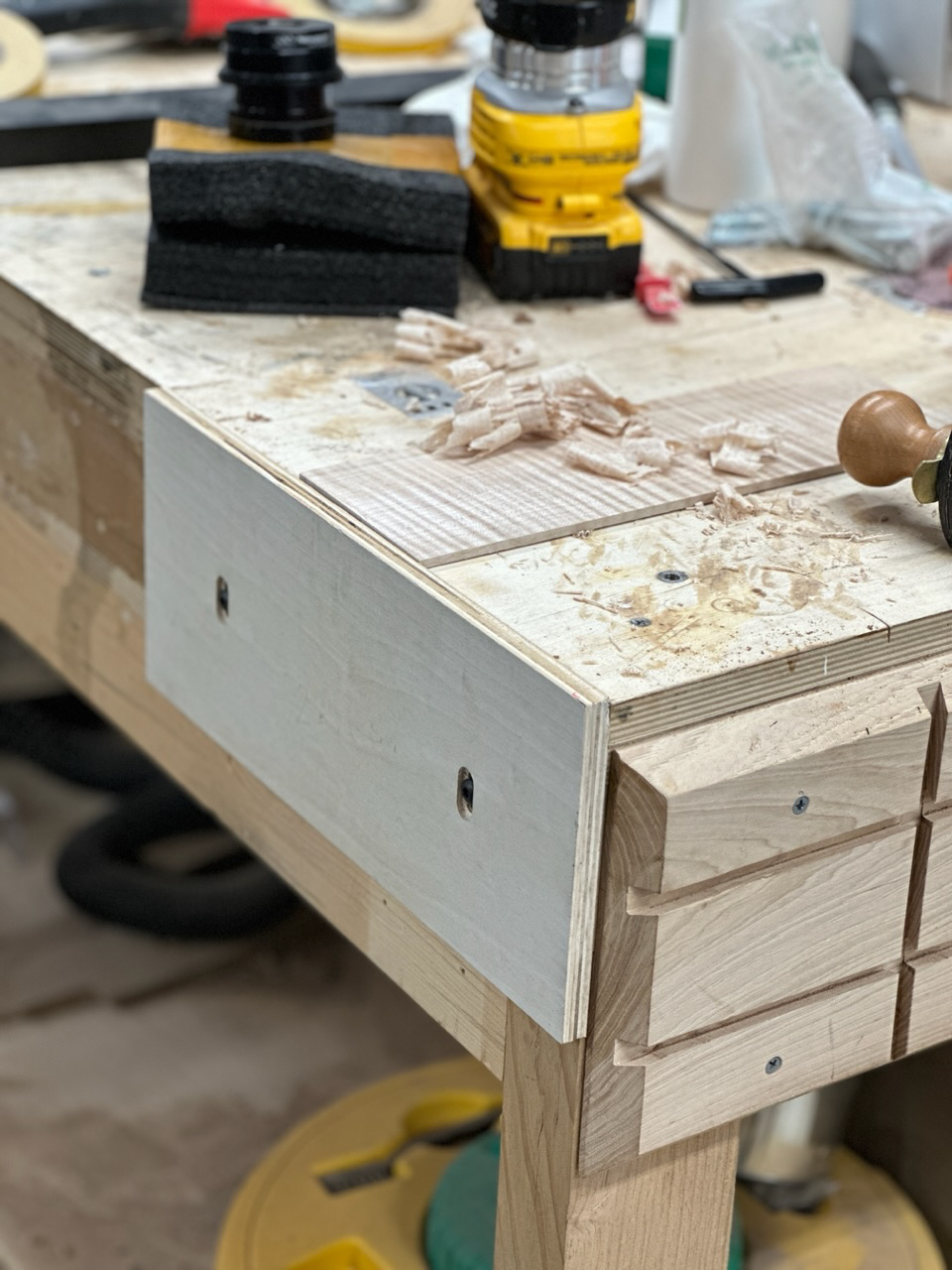 This specific project was a plane stop for the edge of my bench. I placed the slots in a vertical orientation 3" over from both sides and on center vertically on the board. I also centered the two slots at 3" from the top and bottom.