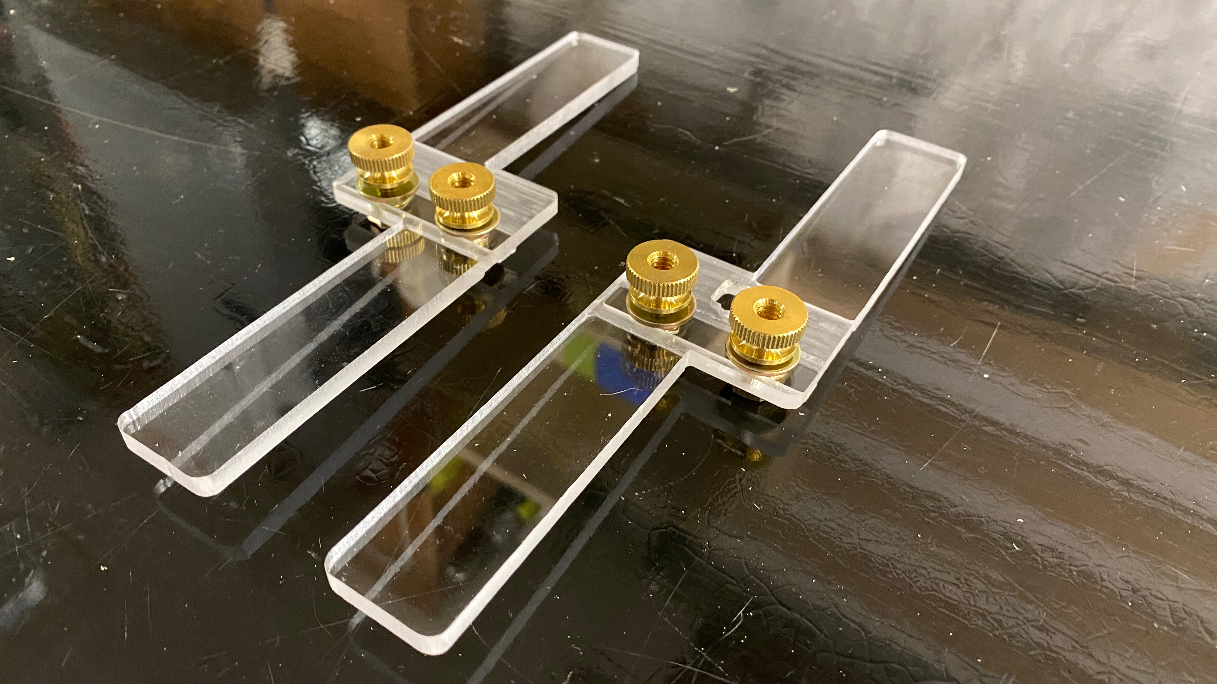 - 1/4-20 Bolts and knurled nuts (https://www.homedepot.com/p/Everbilt-8-32-tpi-Brass-Knurled-Nut-3-Piece-per-Bag-831128/204958206)